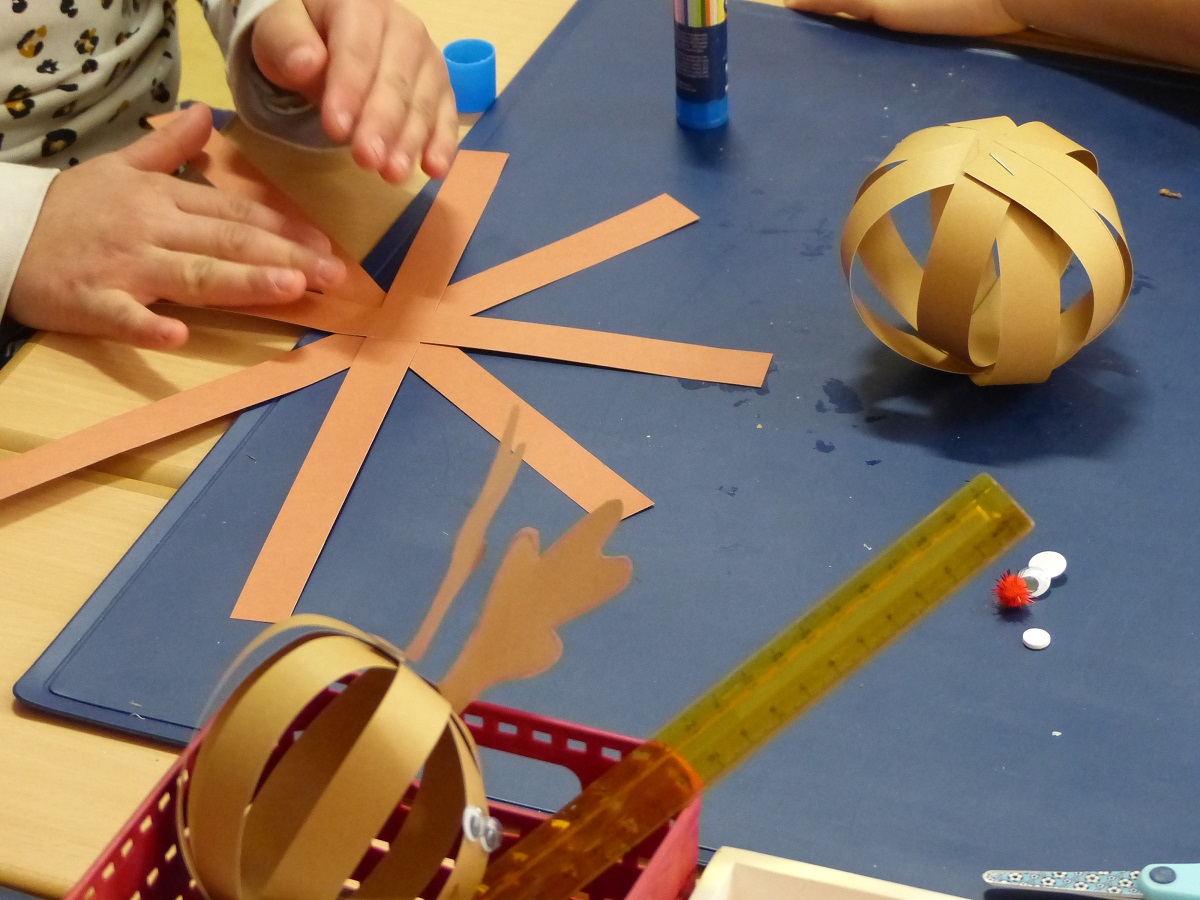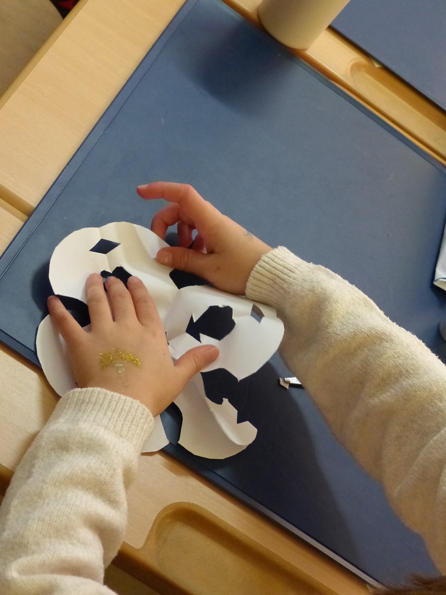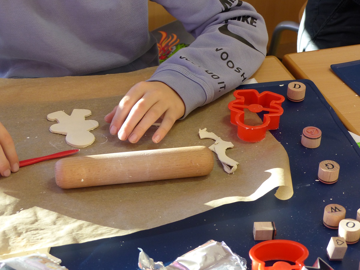 Uns begeistert die Stimmung in der Klasse. Die Kinder arbeiten konzentriert an ihrer Bastelei und genießen diesen Tag. Dabei entstehen wunderschöne adventliche Schmuckstücke, die die Kinder stolz mit nach Hause nehmen dürfen oder damit die Klasse schmücken.