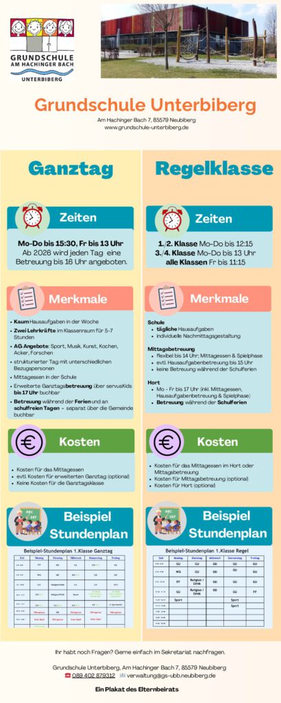 Darüber hinaus sorgt die Gemeinde Neubiberg für ein sehr gutes Angebot an AG’s und engagiert sich hier deutlich über das vom Land vorgegebene Maß hinaus.